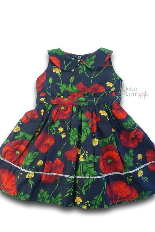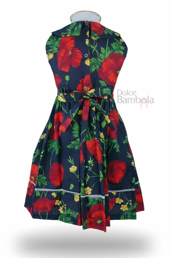 Vestido marinho com sofisticada estampa de flores e folhas.